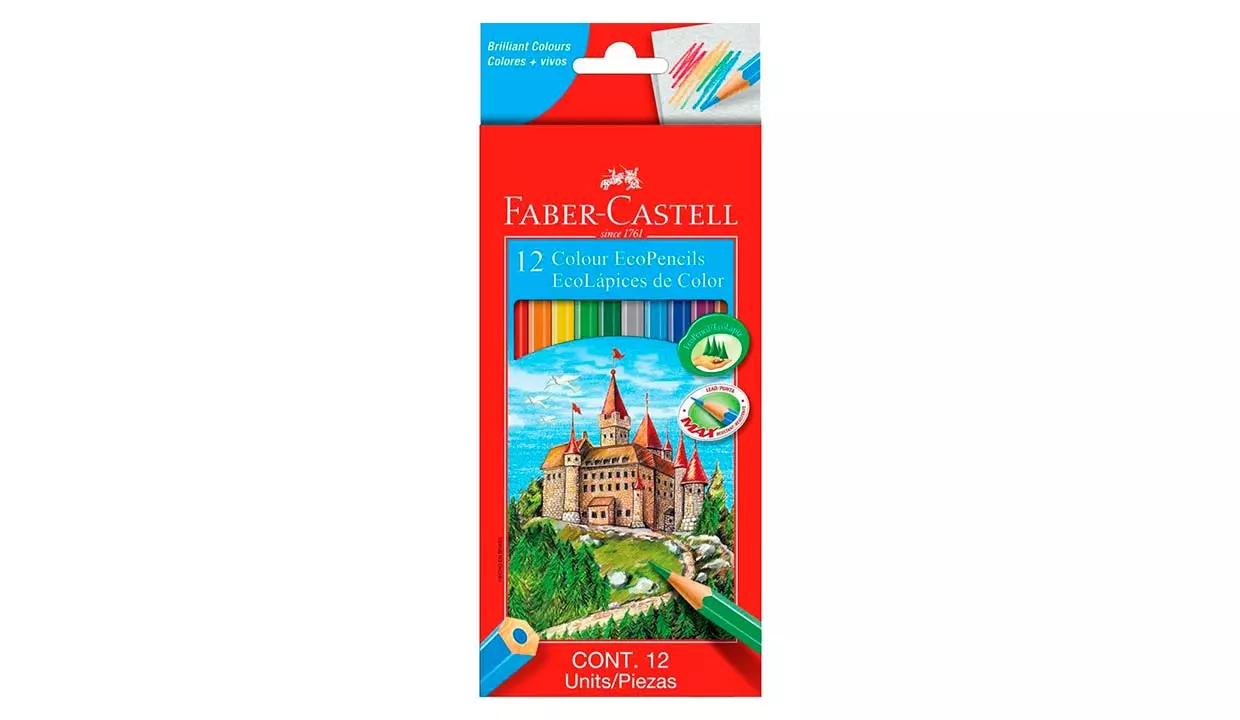 - 12 Ecolápices de colores permanentes con cuerpo hexagonal ergonómico y una zona exclusiva Grip antideslizante.