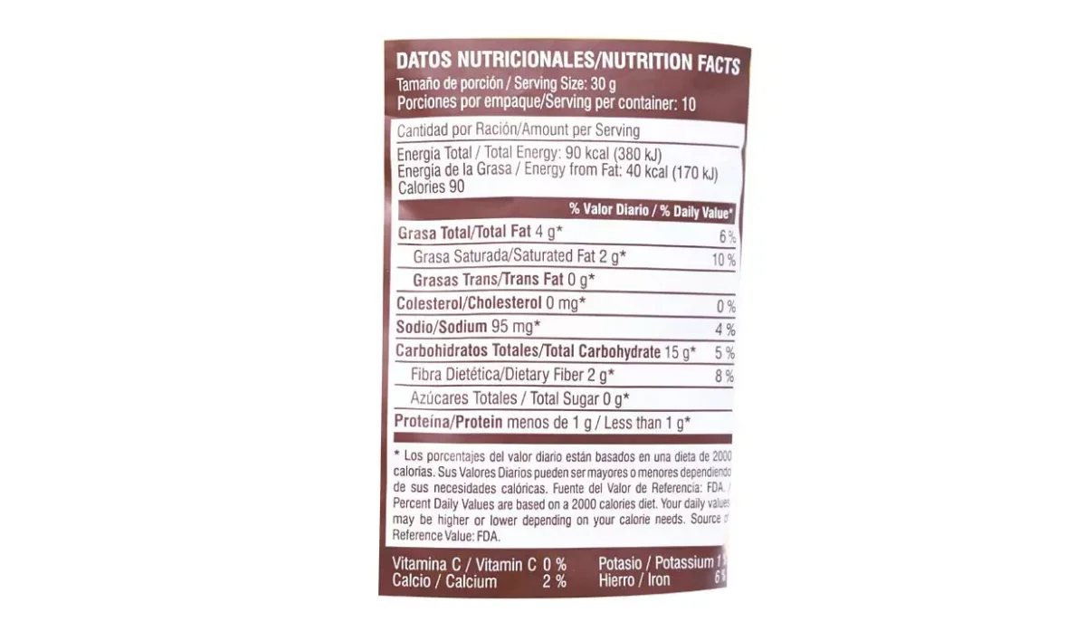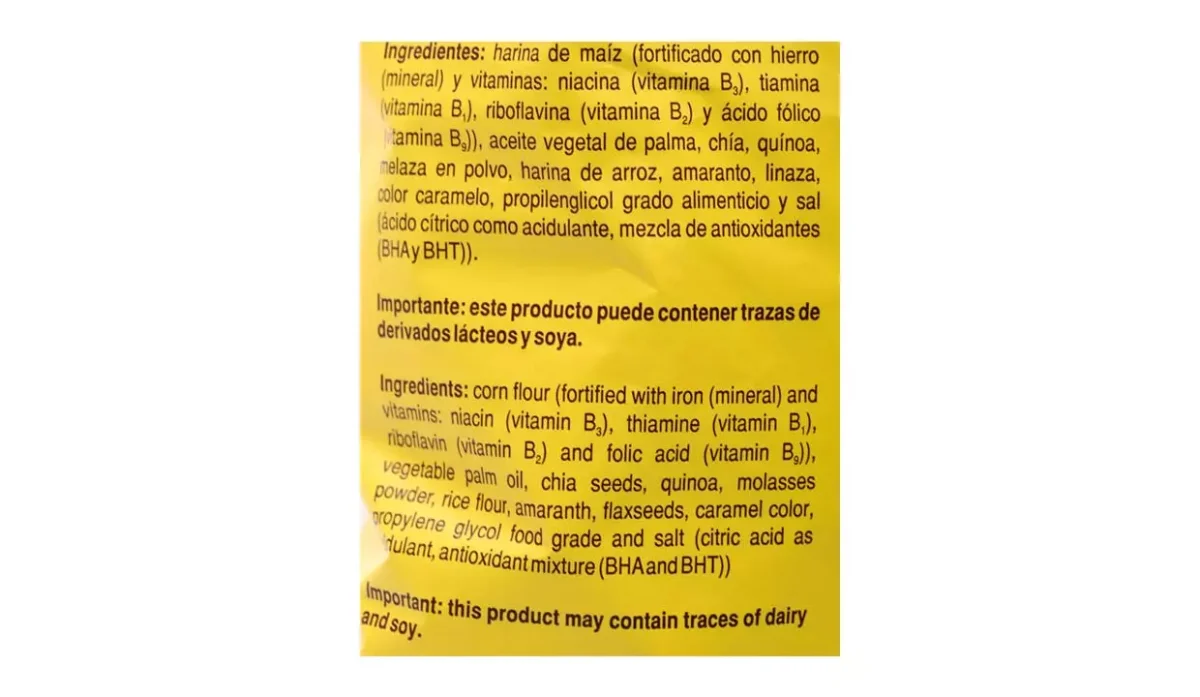 - Tortilla multigrano con quínoa, linaza, amaranto y chía..