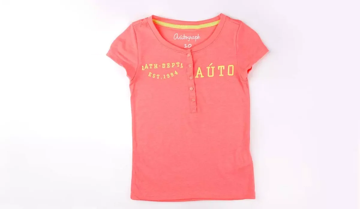 - Blusa manga corta con botones frontales y estampado de letras.