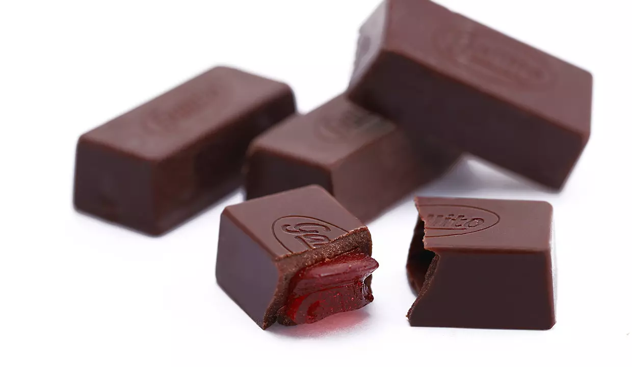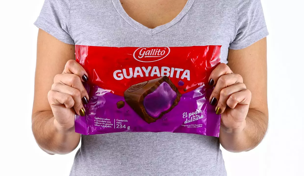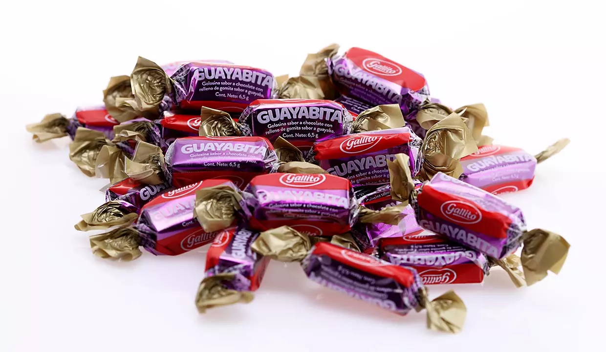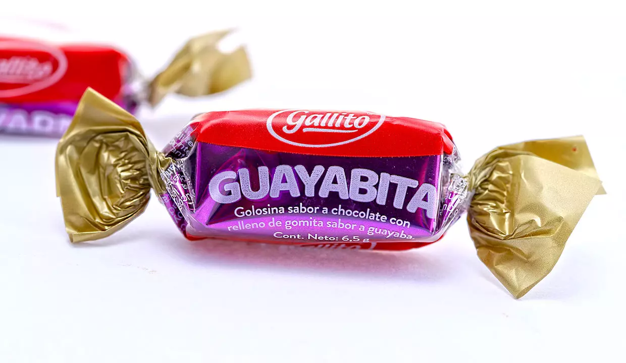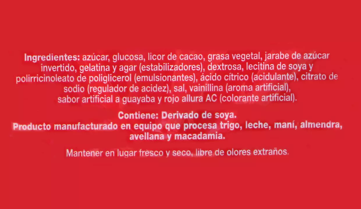 - Golosina sabor a chocolate con relleno de gomita sabor a guayaba.