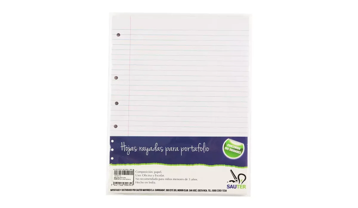 HOJAS RAYADAS SAUTER PARA PORTAFOLIO 100 UNIDADES