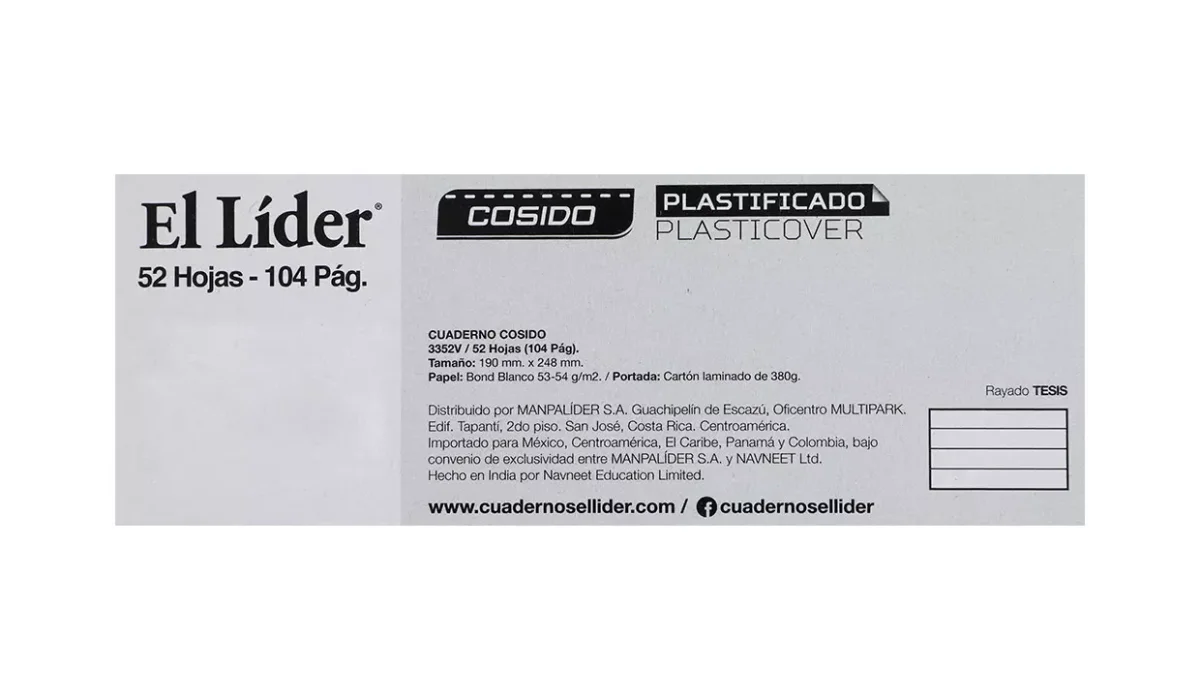 - Cuaderno cocido plastificado.