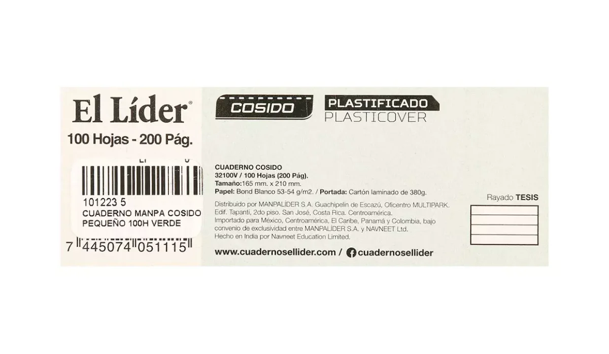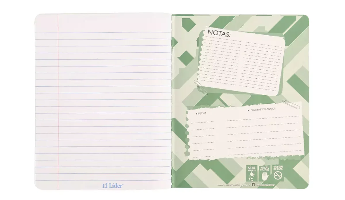 - Cuaderno cocido plastificado.