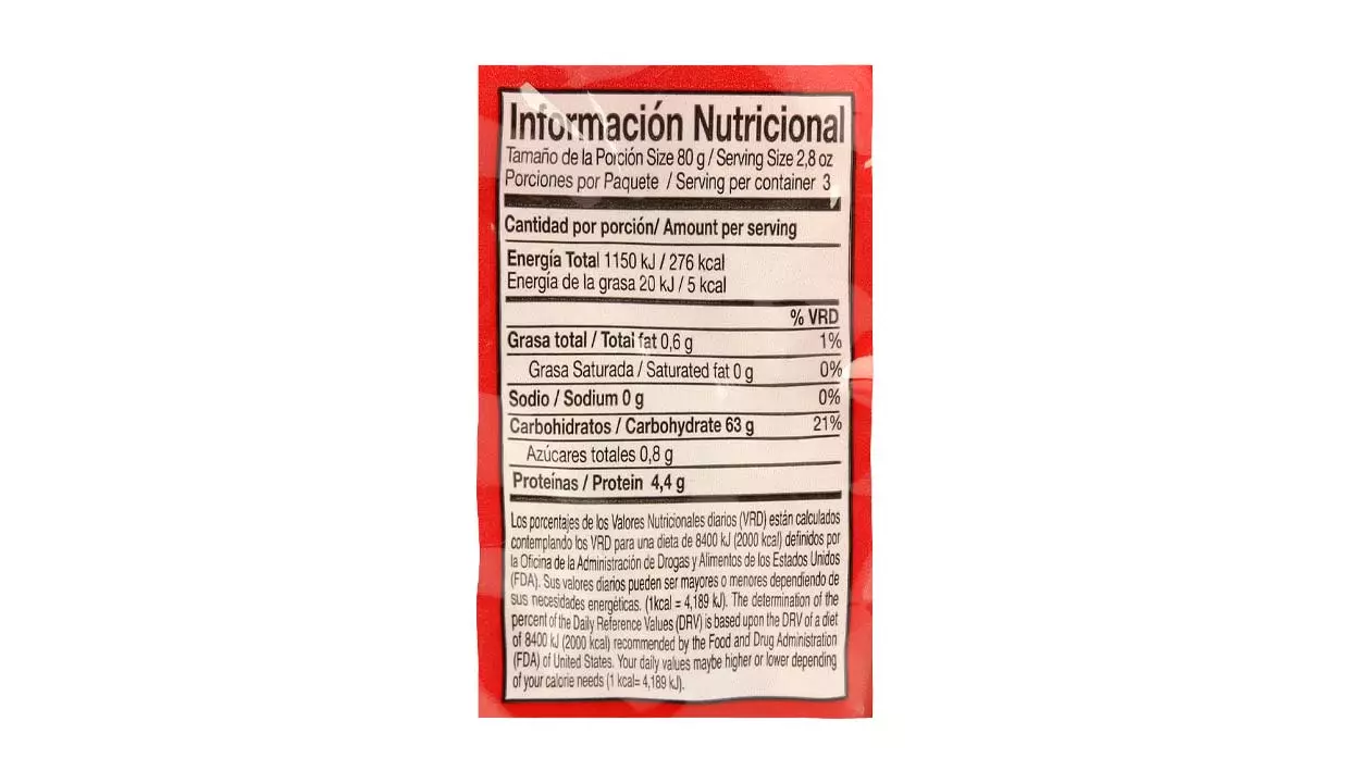 - No contiene: trigo, leche, levadura, sal y soya.