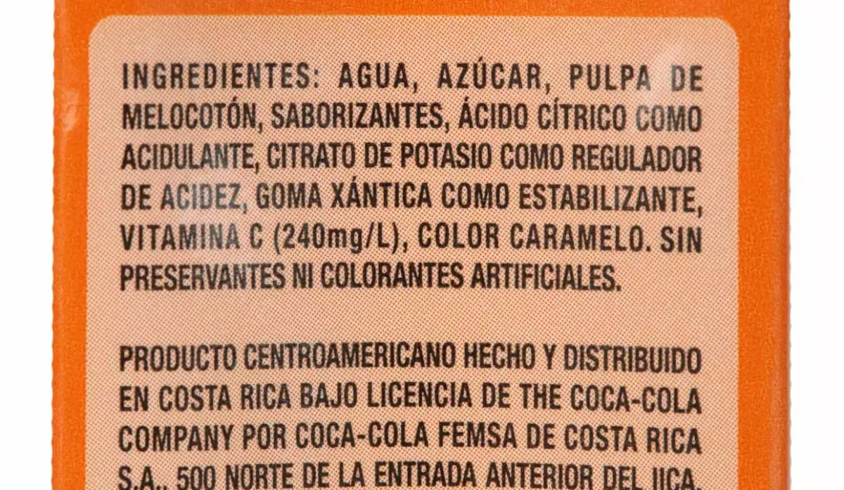 Agua, azúcar, pulpa de melocotón y vitamina C.