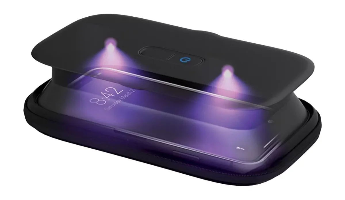 - Con tecnología LED UV-C desinfecta tu teléfono en solo 30 segundos del lado frontal y después de 30 segundos, gira tu teléfono y repite.