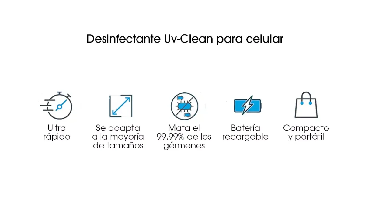 - Diseñado para todo tipo de celulares, además desinfecta tarjetas de crédito, plumas, lentes, etc.