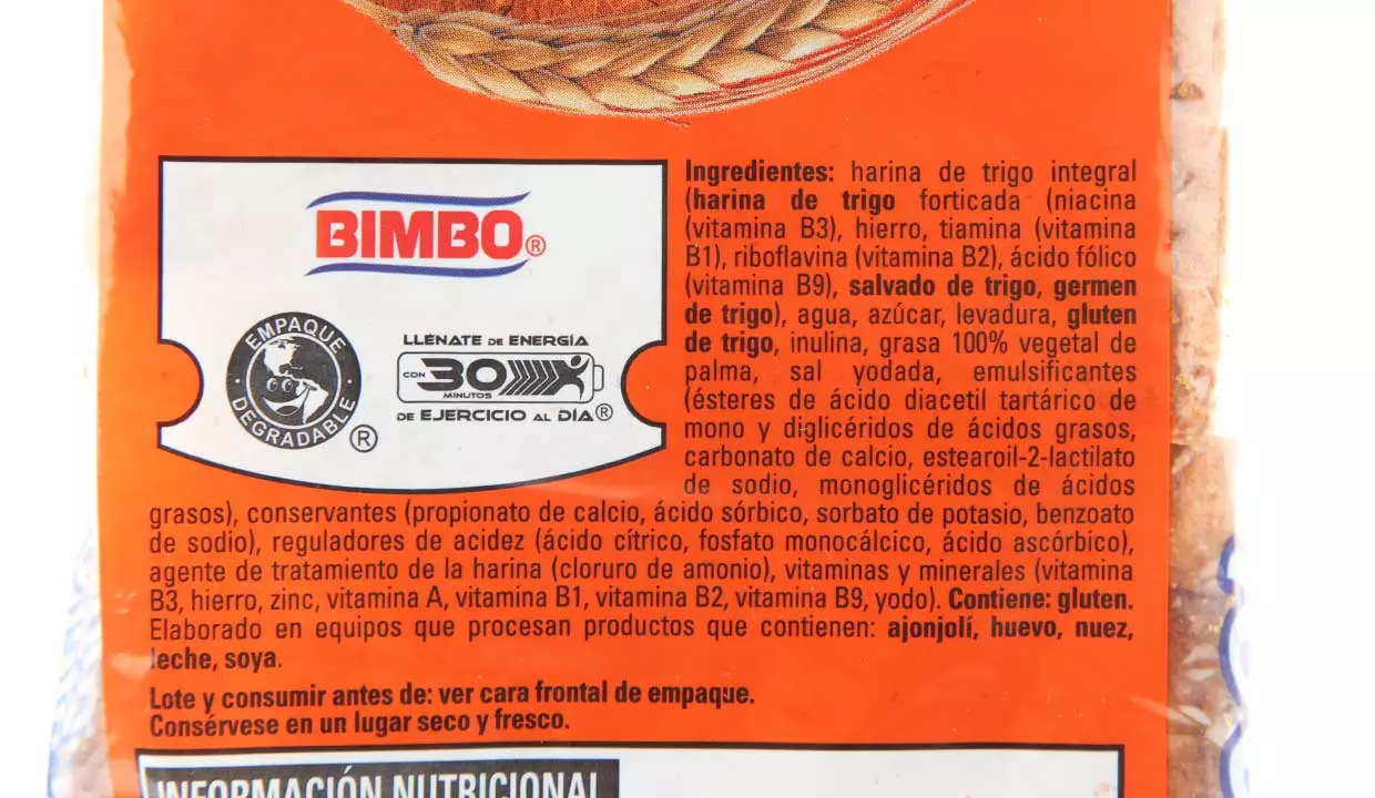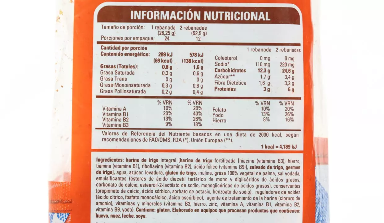 - Harina de trigo integral, agua, azúcar, levadura, gluten y soya.