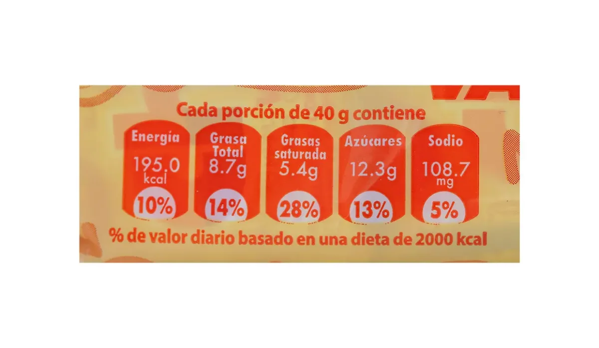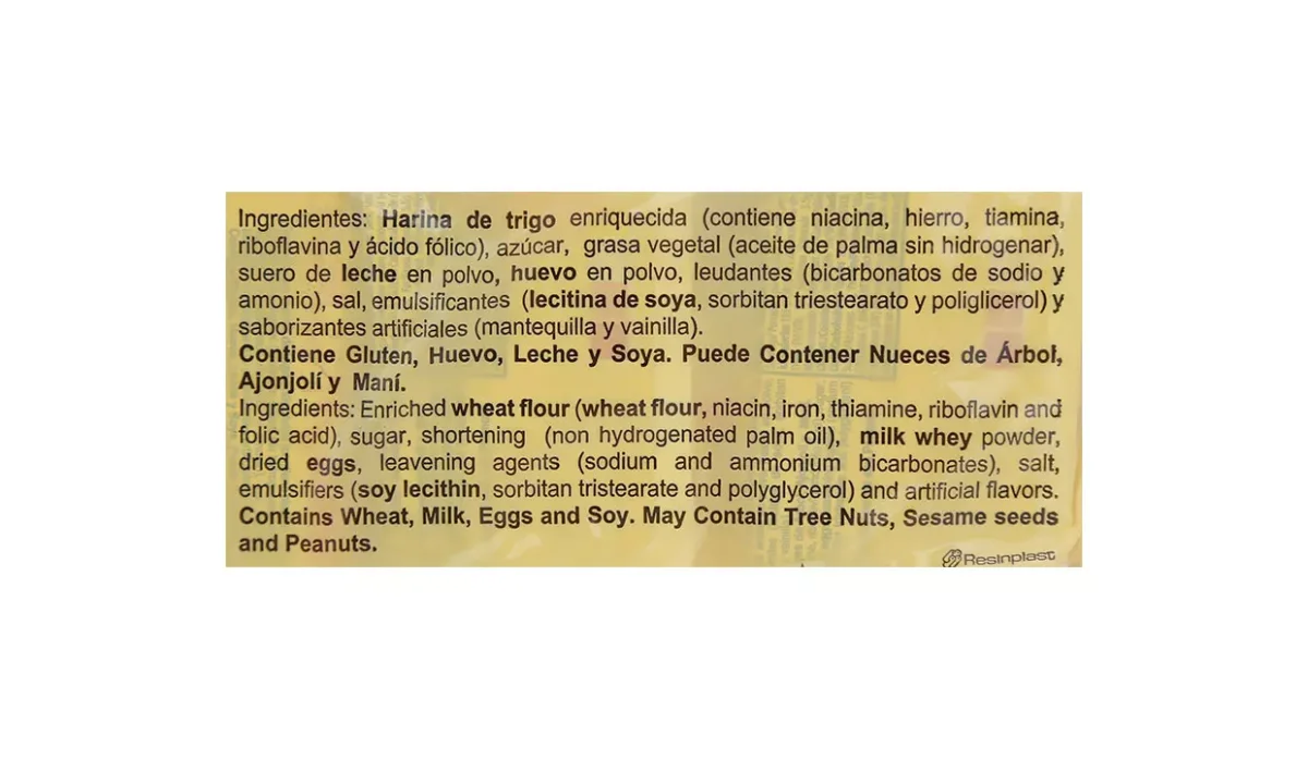 - Harina de trigo, azúcar, leche, huevo, soya y saborizantes artificiales a mantequilla y vainilla.