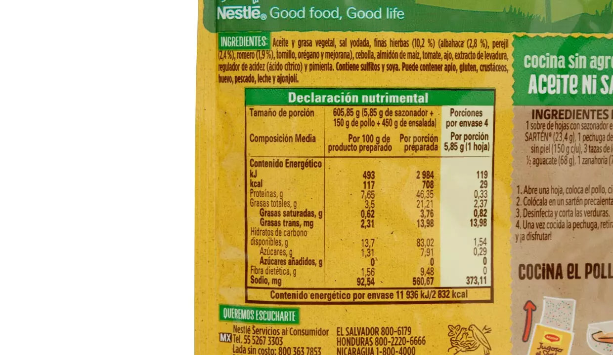 - Puede contener: soya, pescado, crustáceos, huevo, ajonjolí, apio y leche.