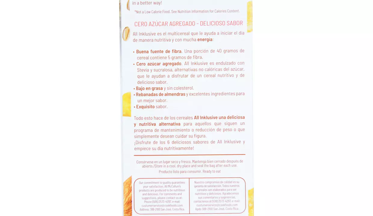 - Puede contener: soya, maní, otras nueces y trazas de leche.