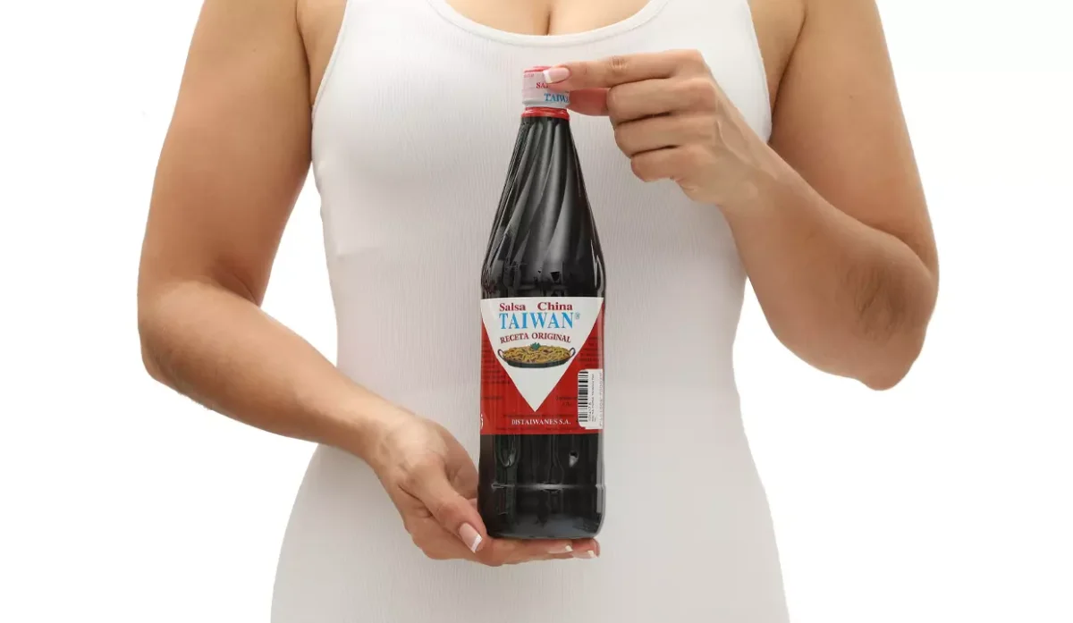 - Agua, sal, soya, azúcar, especias y color natural a caramelo.