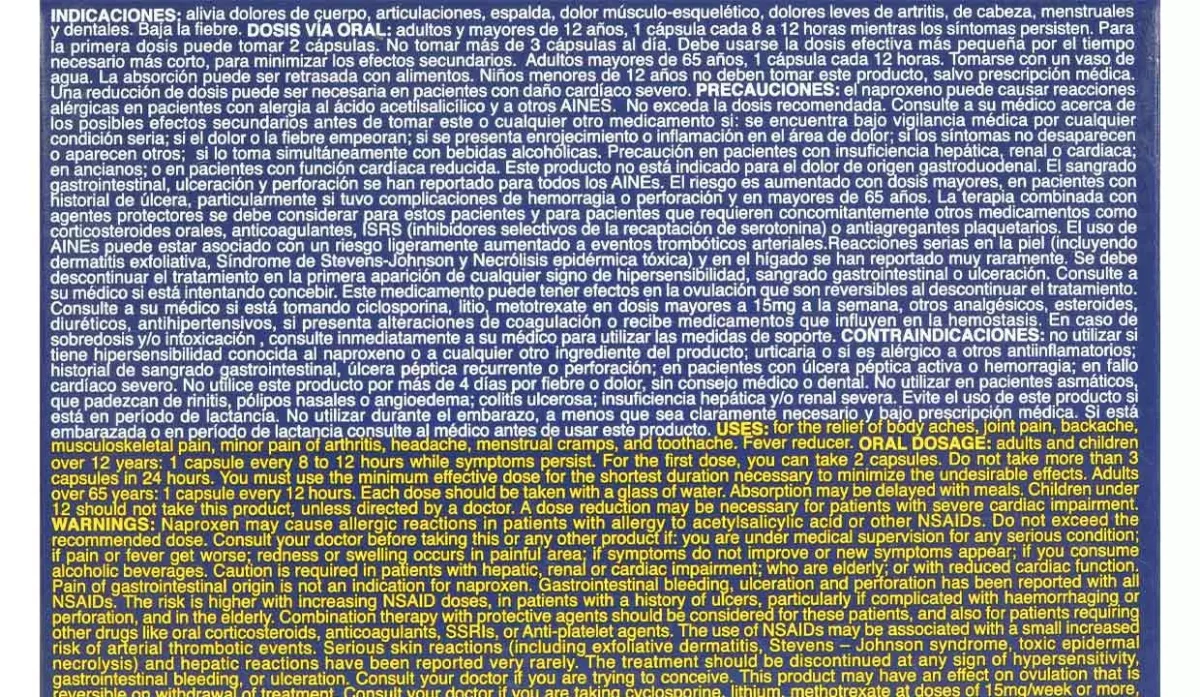 - Naproxeno 220mg.