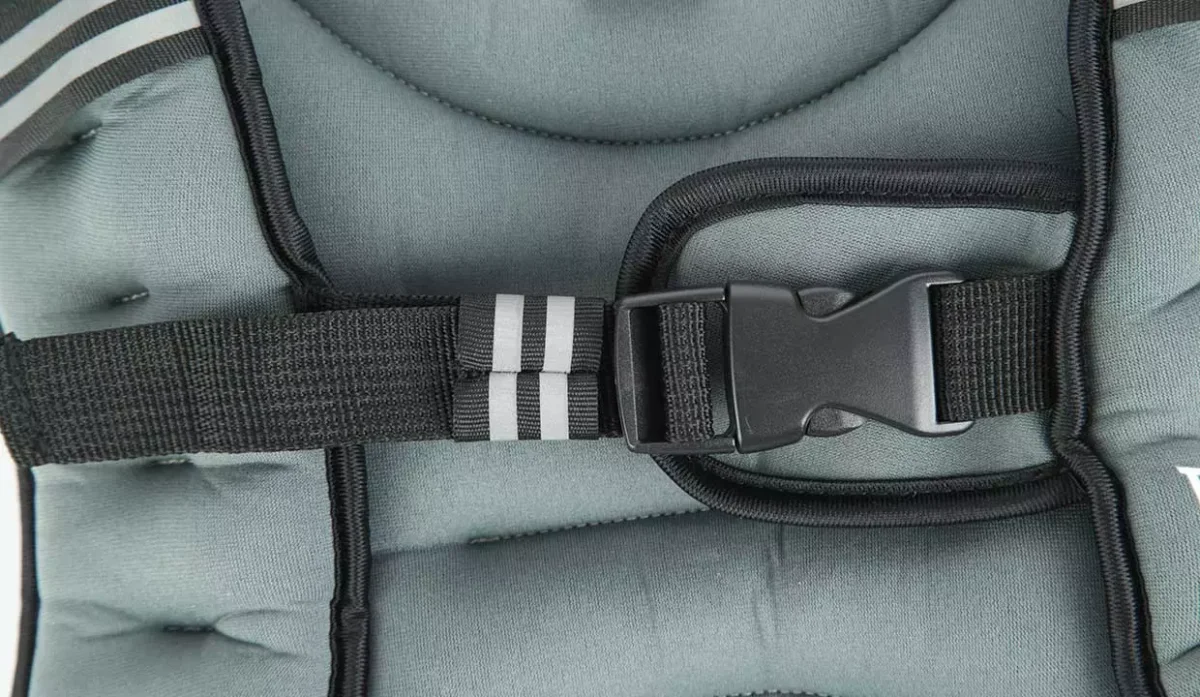 - Con un cinturón frontal ajustable lo cual evita que se deslice.