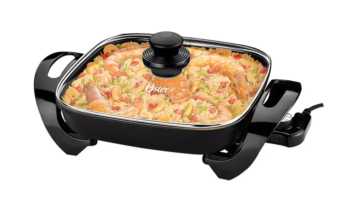 | Superficie de cocción antiadherente con tapa y base aptas para uso en lavaplatos que facilitan su limpieza | |