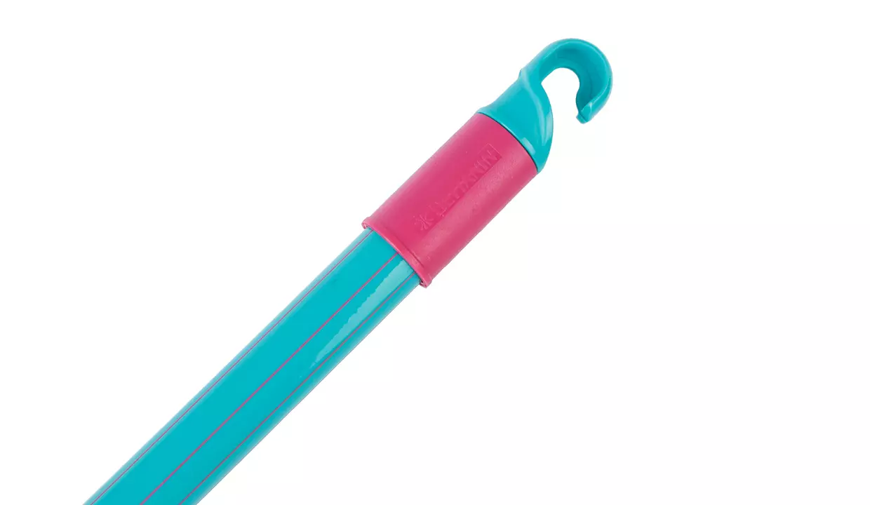 - Su palo está compuesto por metal aluminio recubierto de plástico, para un desarrollo más resistente y liviano.