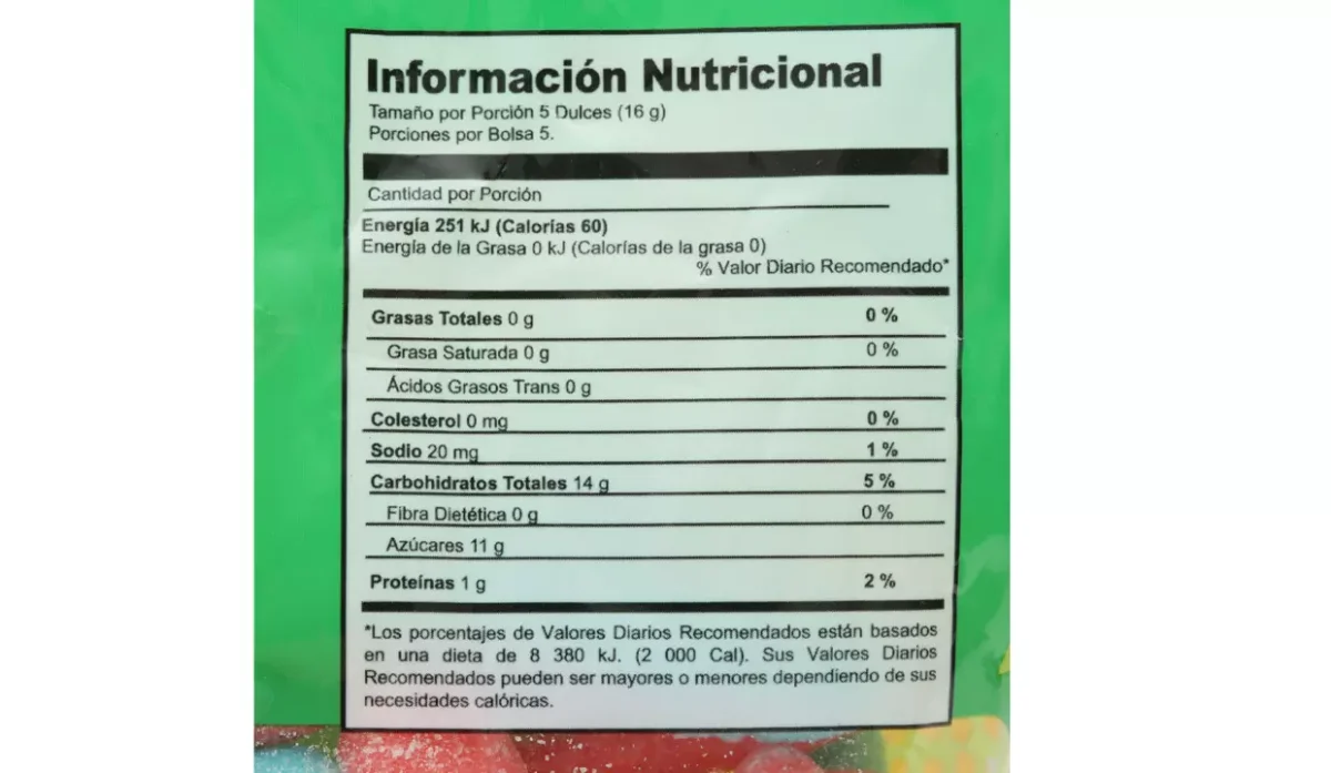 - Gomitas con sabor frutal.