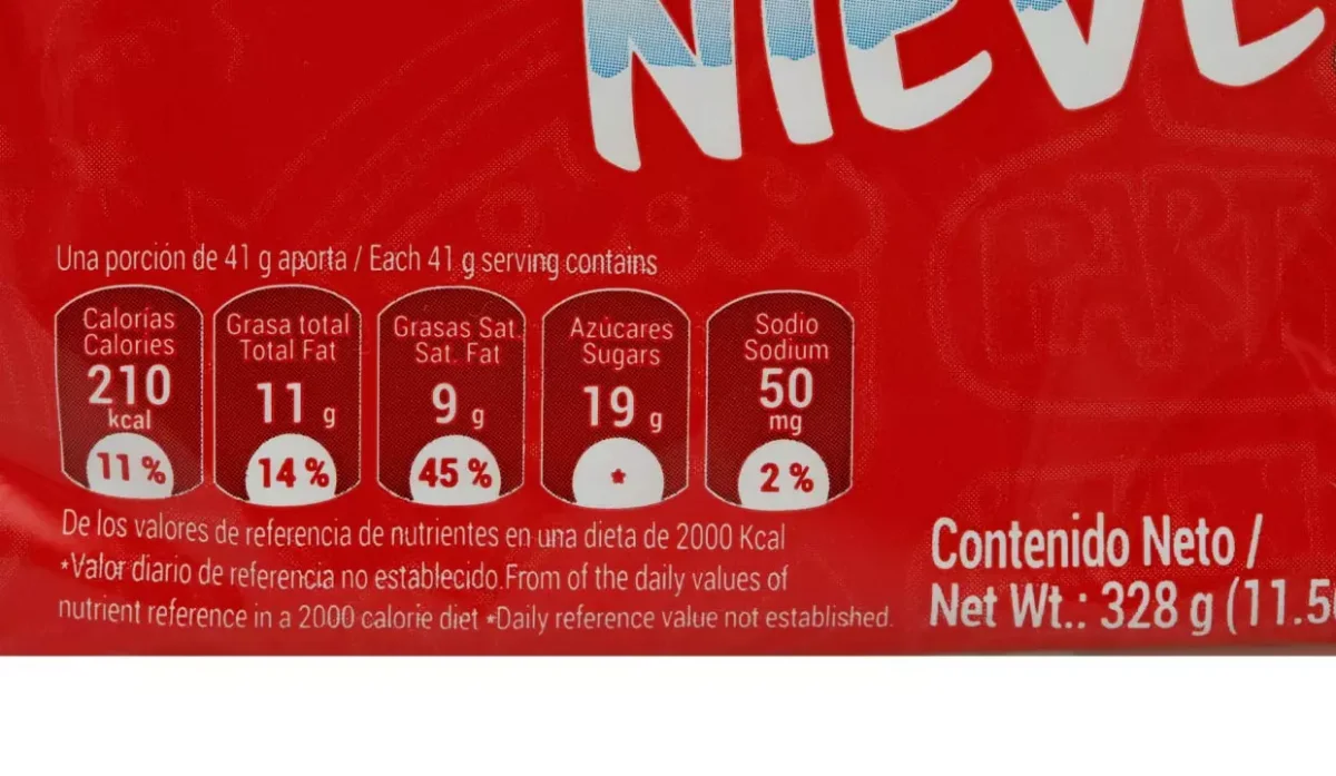 - Azúcar, grasa vegetal, harina de trigo, leche, cacao en polvo y aroma artificial a vainilla.