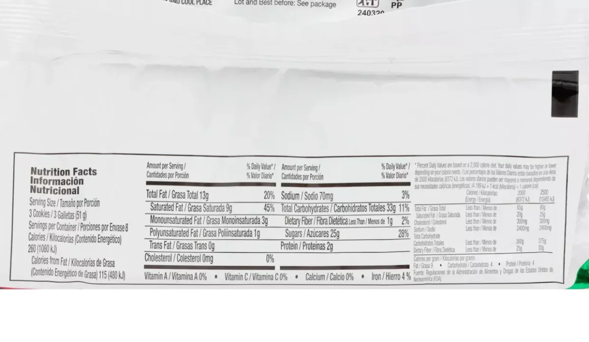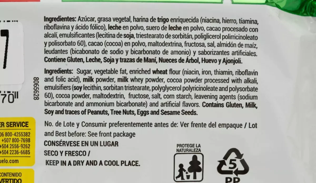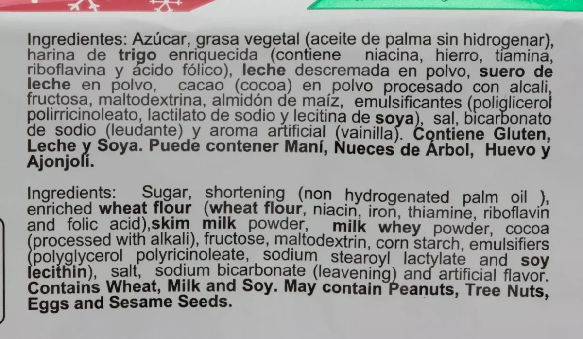 - Puede contener: maní, nueces de árbol, huevo y ajonjolí.