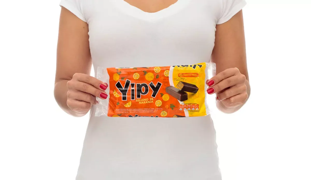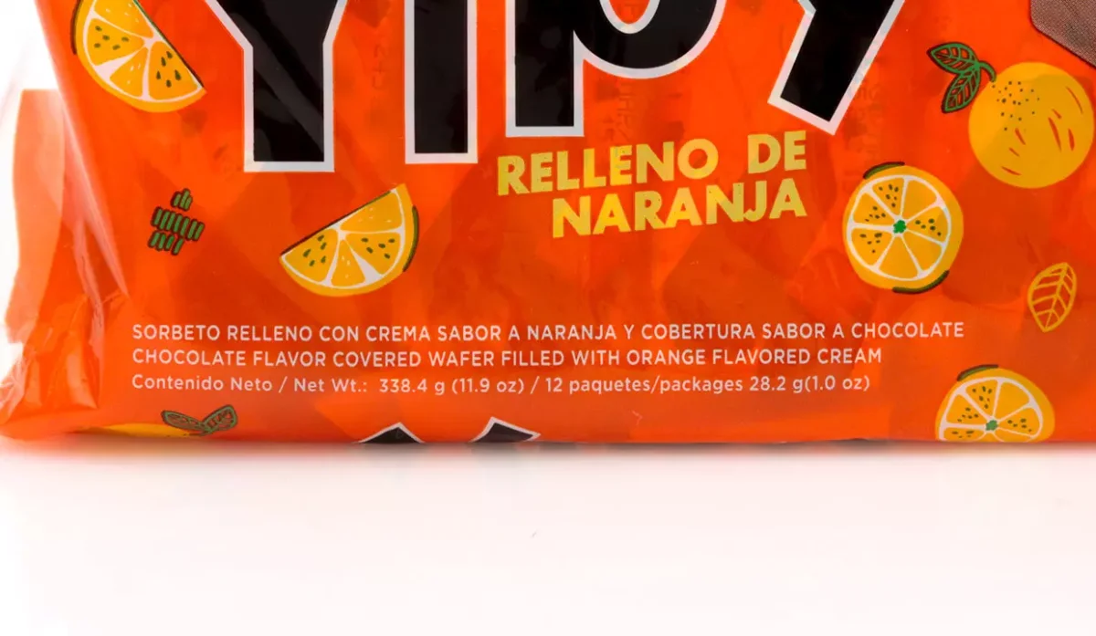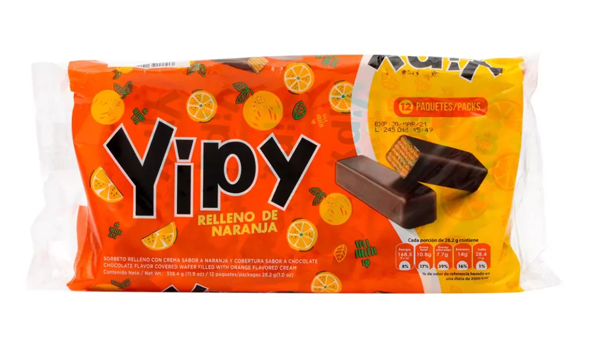- Galleta rellena con crema sabor a naranja y cobertura sabor chocolate.