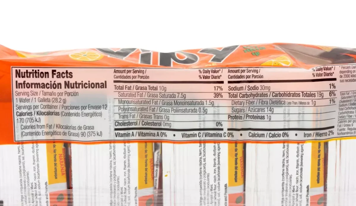 - Azúcar, grasa vegetal, harina de trigo, suero de leche en polvo, cocoa, saborizante artificial a naranja y vainilla.