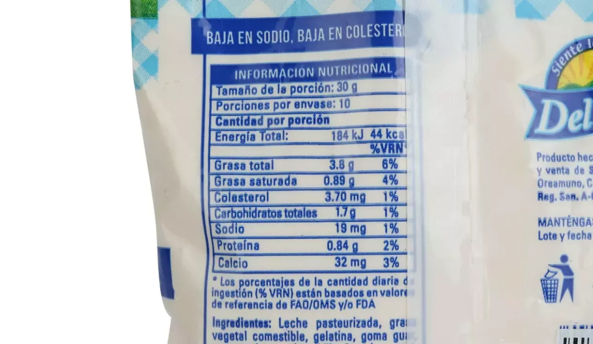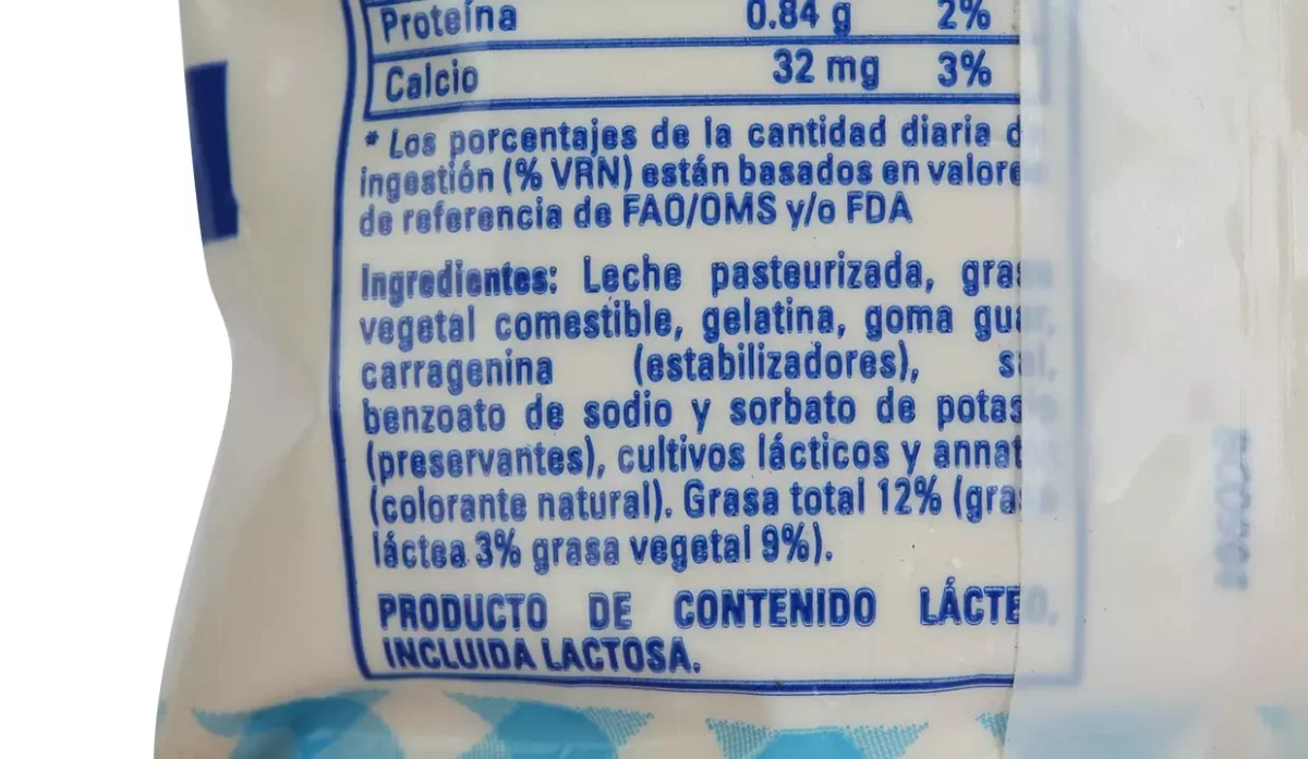 - Leche pasteurizada, grasa vegetal, gelatina y sal.