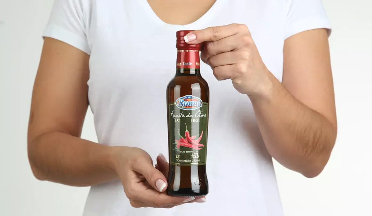- Aceite extra virgen de oliva y aroma natural a guindilla.