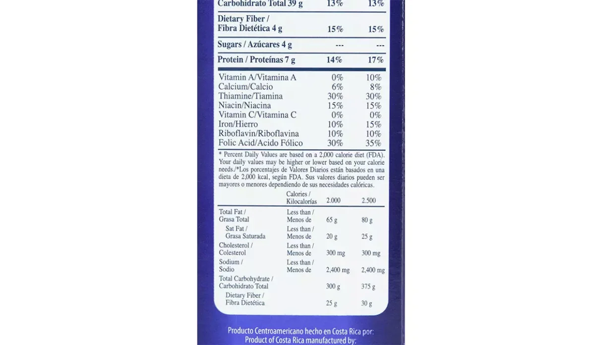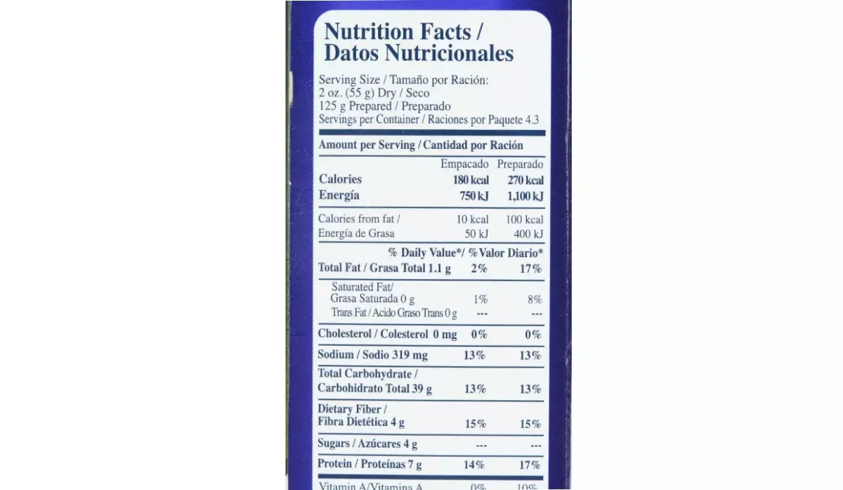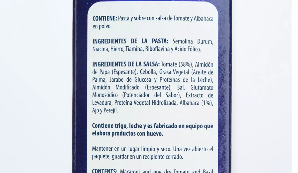- Pasta: semlina durum, niacina, hierro, tiamina, riboflavina y ácido fólico.