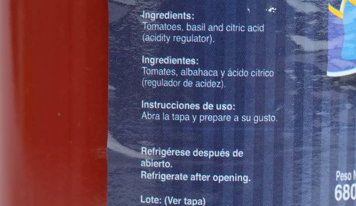 Tomates, albahaca y ácido cítrico.