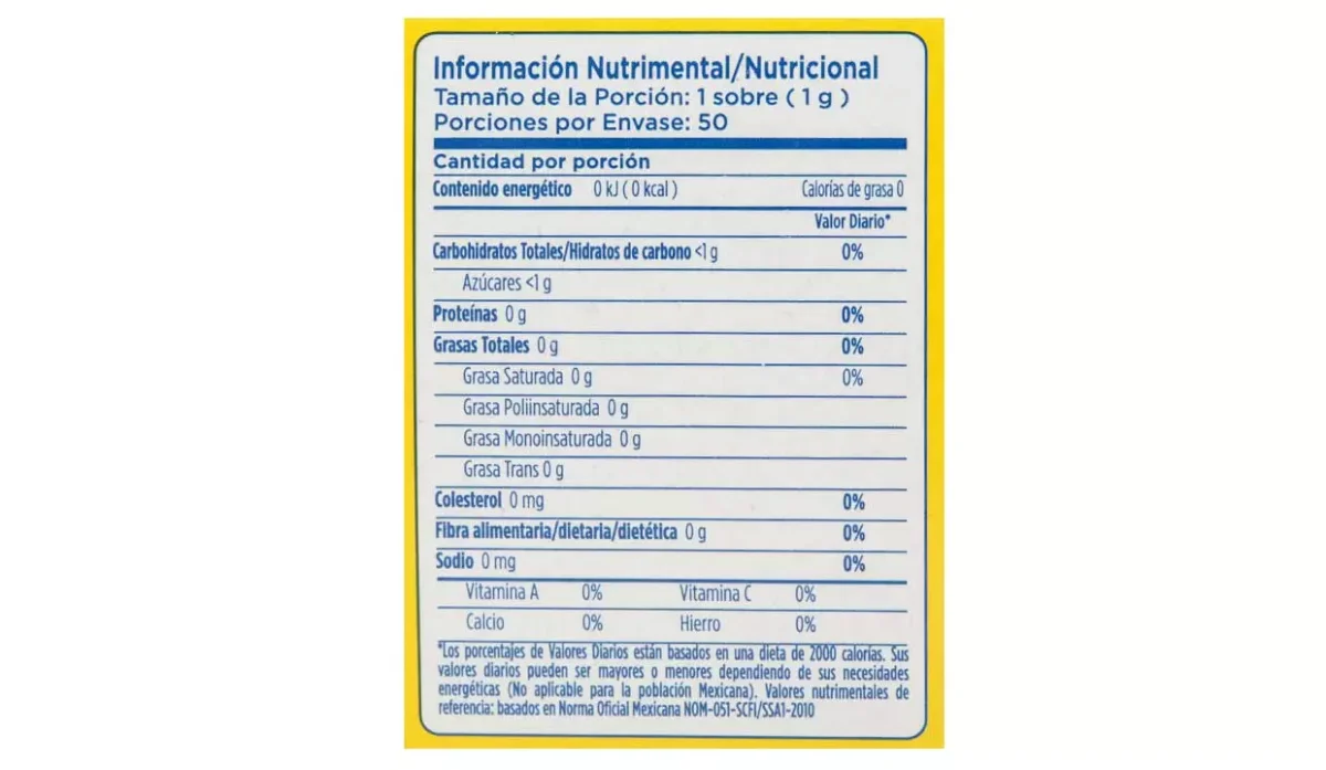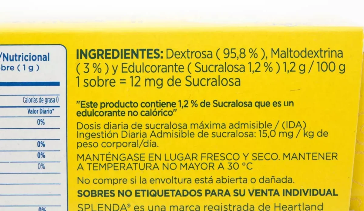 - Este producto contiene 1,2% de sucralosa que es un edulcorante no calórico.