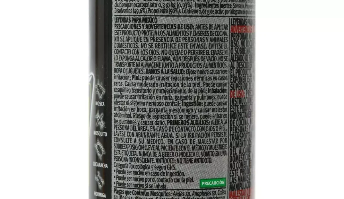 - Mata insectos voladores y rastreros como: cucarachas, hormigas, moscas, mosquitos y avispas.