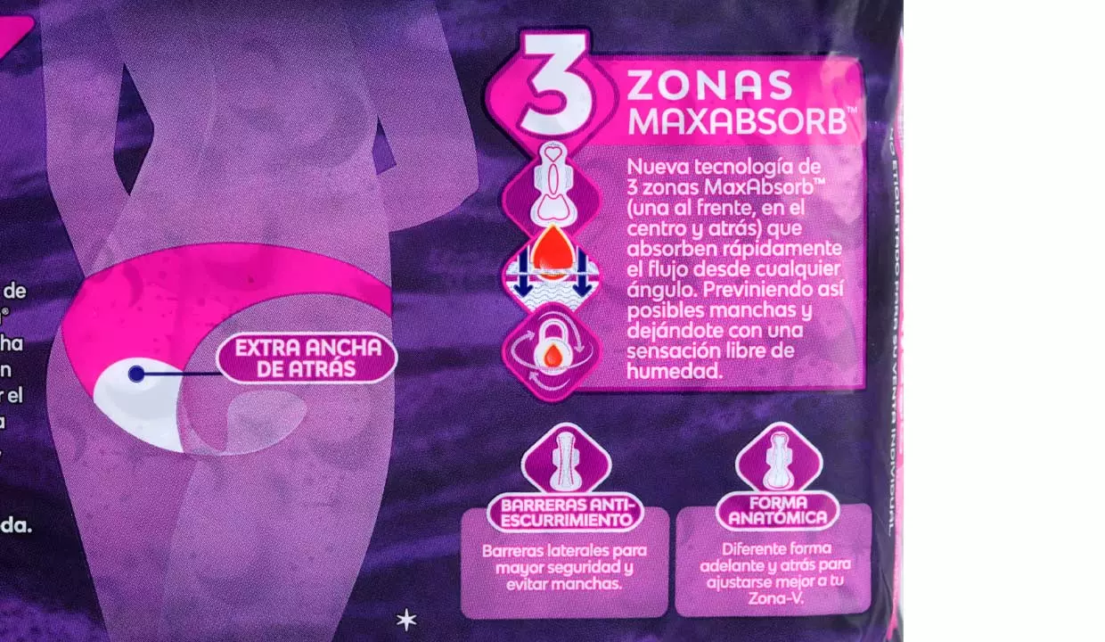 - Tecnología absorbplus, cuenta con canales profundos donde más lo necesitas para darte máxima protección.