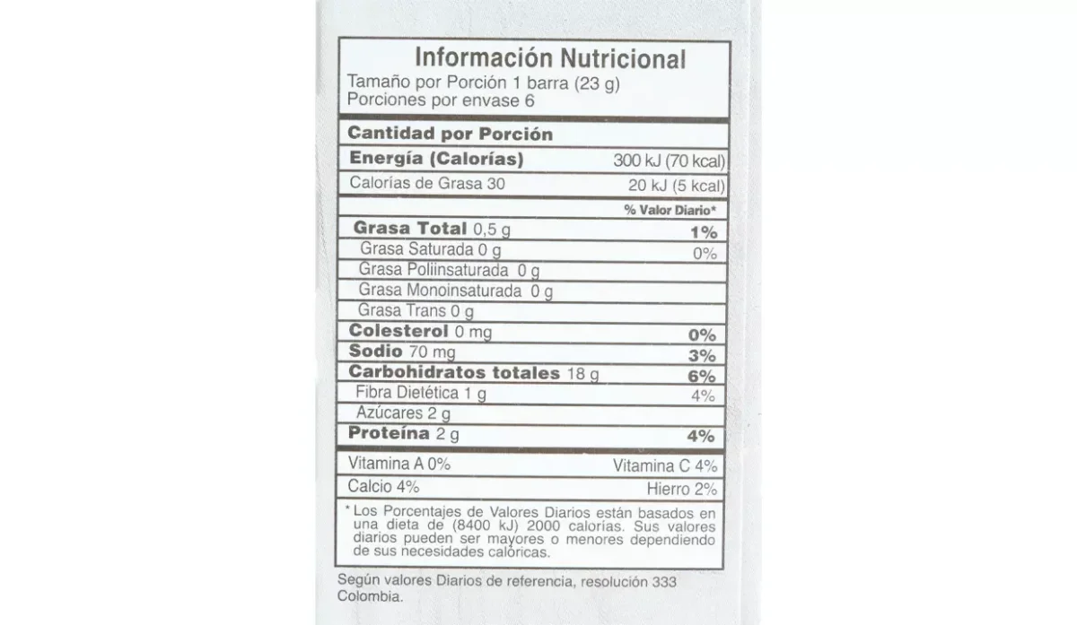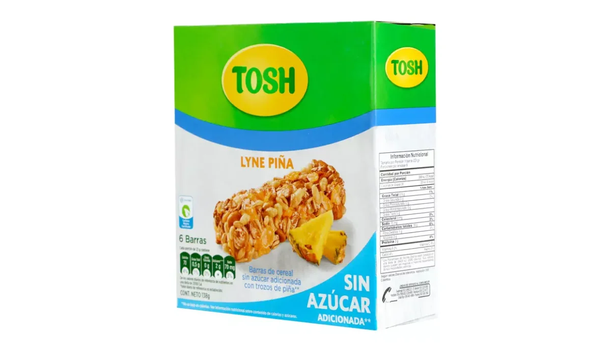 - Avena en hojuela, hojuelas de maíz, sal, malta de cebada, piña deshidratada en trozos, leche descremada en polvo, grasa vegetal, sabor natural a frutos amarillos, aceite de maíz y edulcorante natural no calórico.