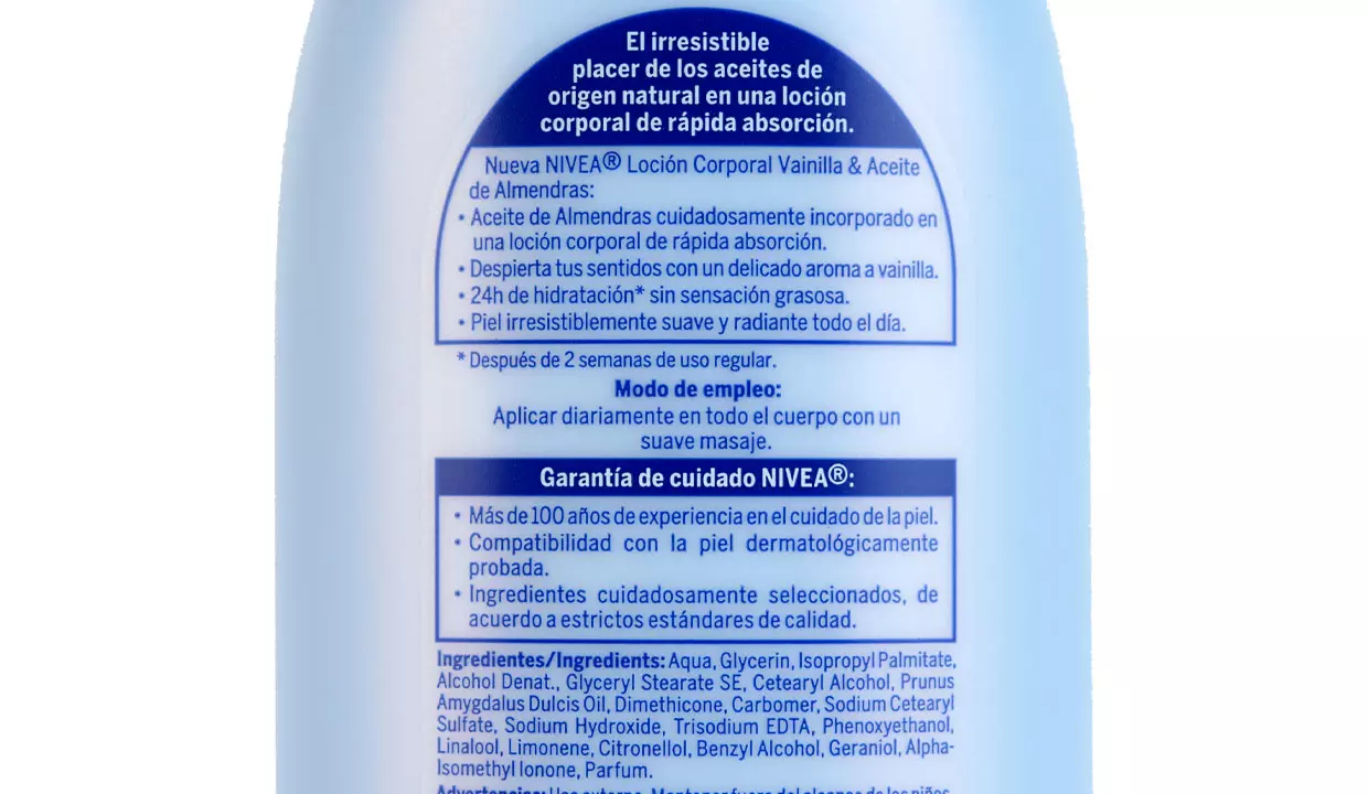- Aceite de almendras cuidadosamente incorporado en una loción corporal de rápida absorción.