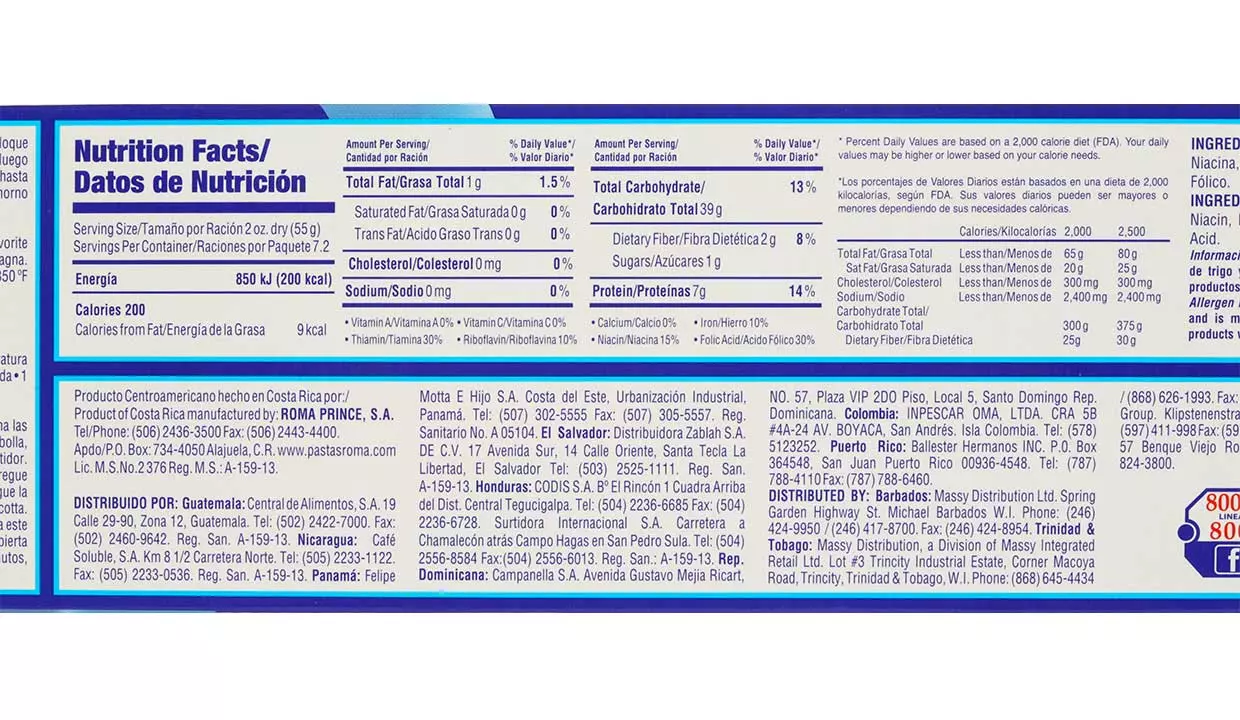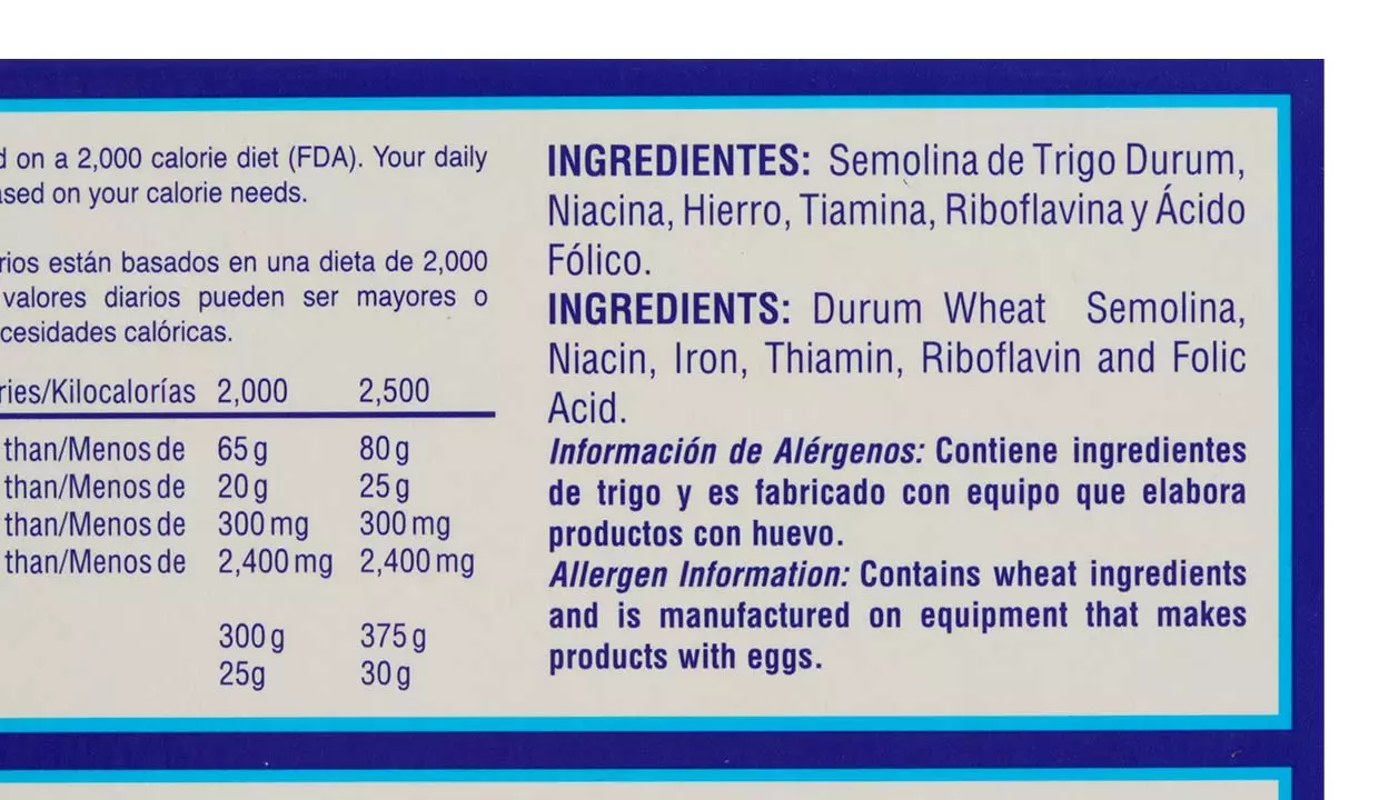 - Semolina de trigo durum, niacina, hierro, tiamina, rivoflavina y ácido fólico.