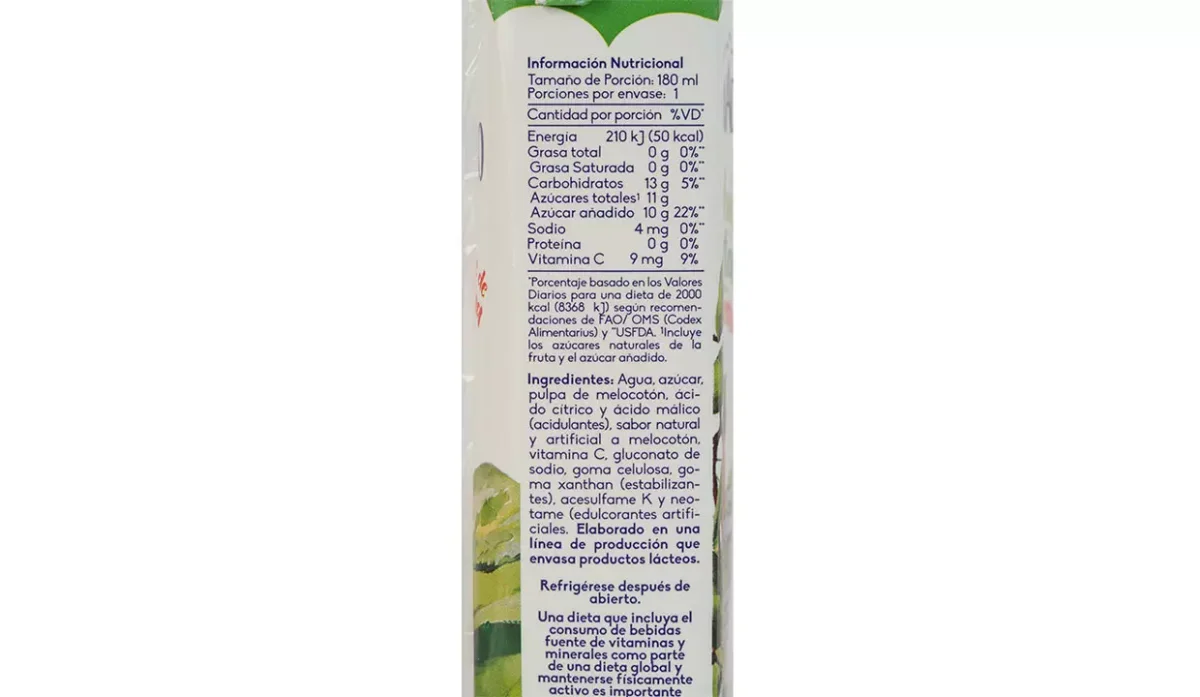 - Azúcar, pulpa de melocotón, ácido cítrico y vitamina C.