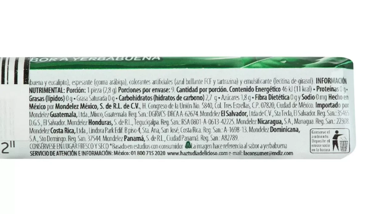 - Azúcar, glucosa, saborizante natural y artificial a yerbabuena.