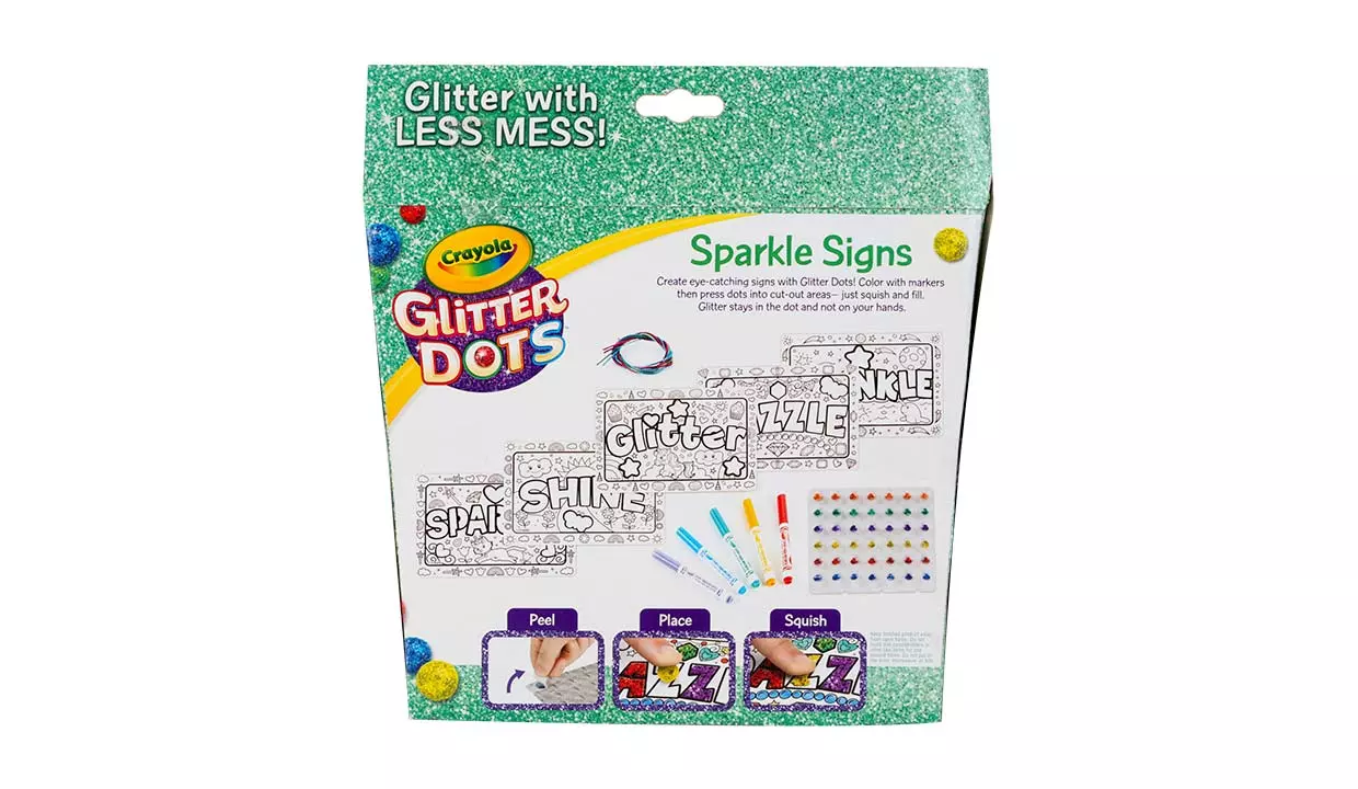 - Los puntos brillantes se adhieren a la mayoría de las superficies, incluido papel, madera, fieltro, papel maché, telas, cartón de espuma y más.