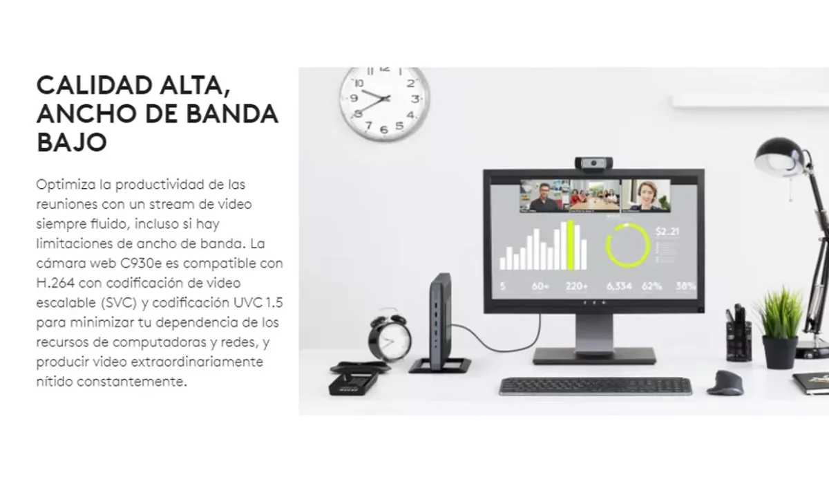 - La compresión de video H.264 con un generoso campo visual ancho de 90°, permite mejores reuniones por video, la resolución HD 1080p/30 fps con ajustes de RightLight 2 y una lente de alta precisión proporcionan video de excelente calidad en cualquier entorno.