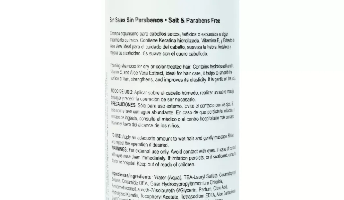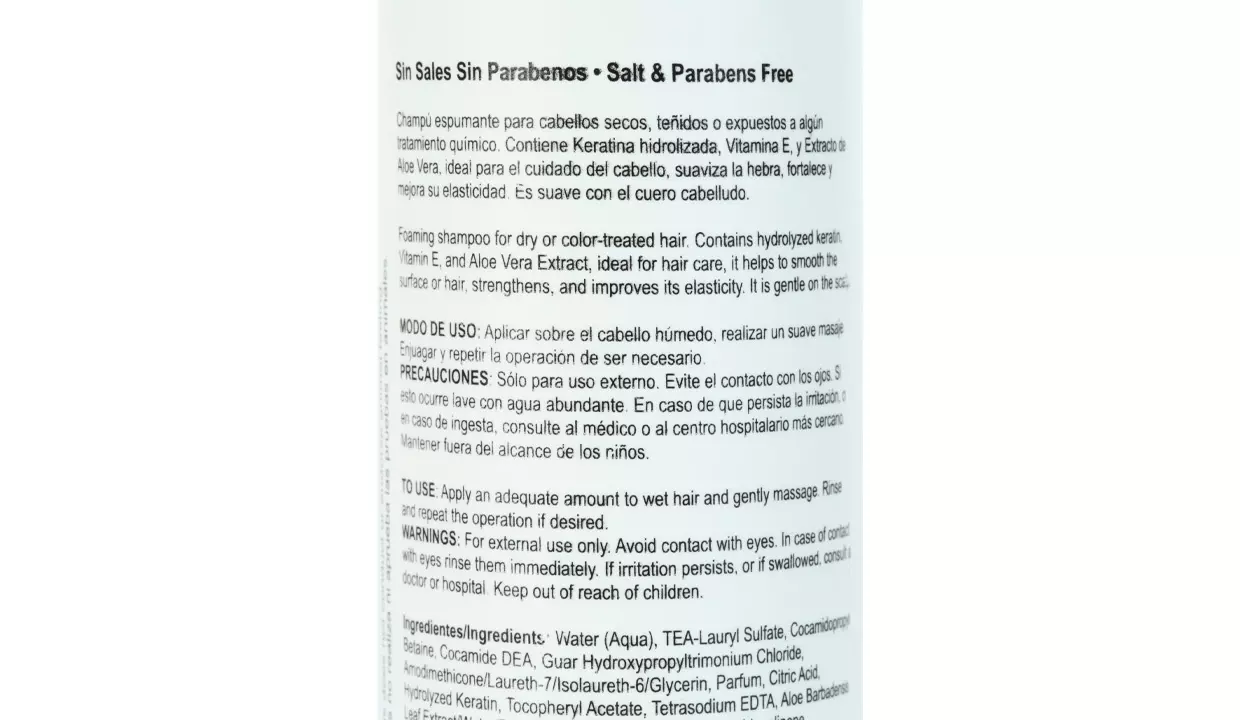 - Shampoo espumante para cabellos secos, teñidos o expuestos a algún tratamiento químico.