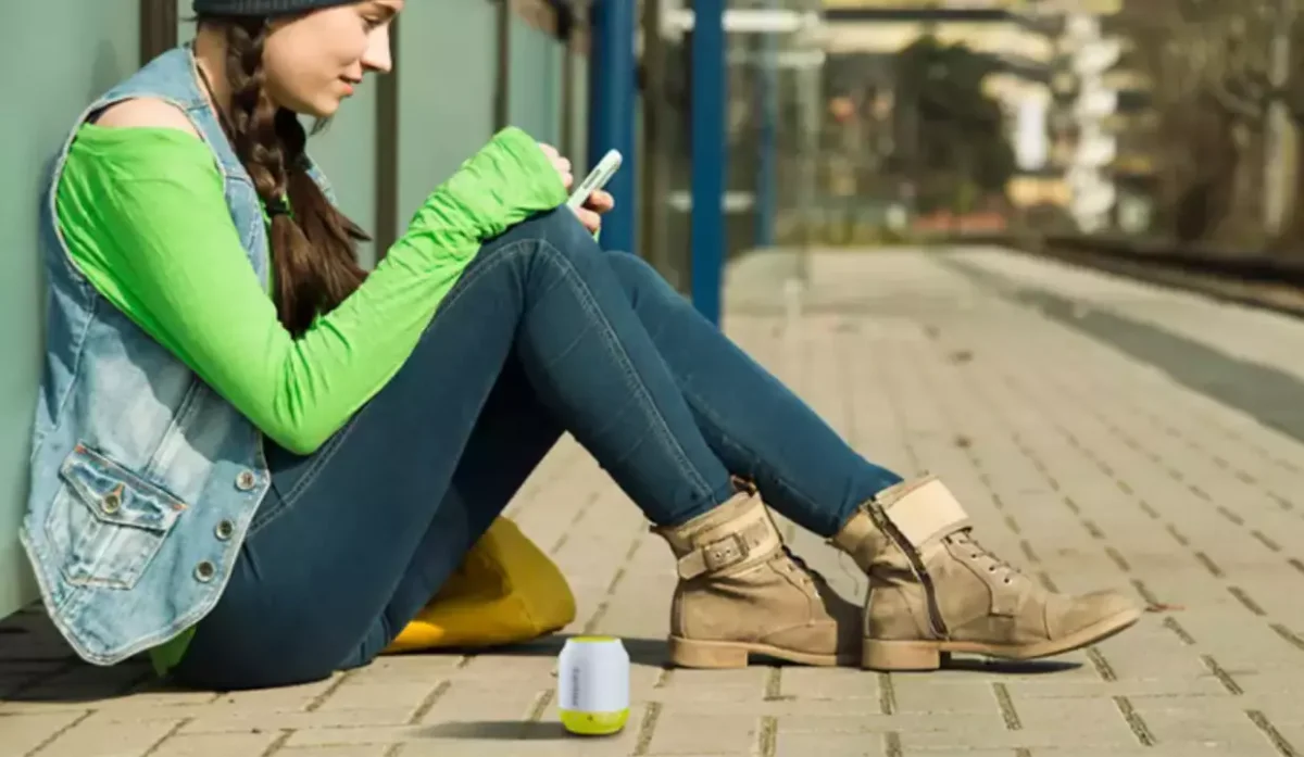 - Disfruta del día al ritmo de la música emitida desde un altavoz inalámbrico compacto, redondo y fácil de transportar.
