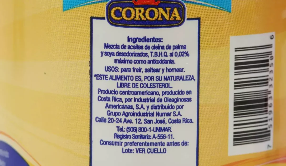 Aceites de oleína de palma y soya.