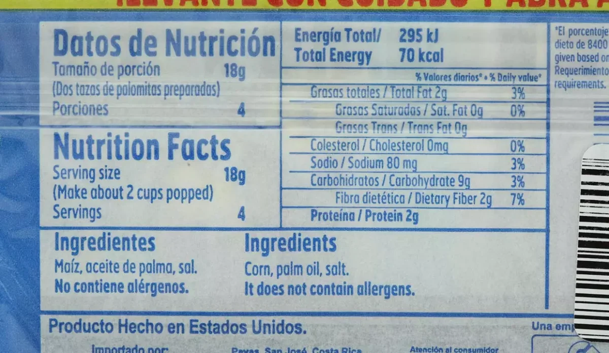 - Maíz, aceite de palma y sal.