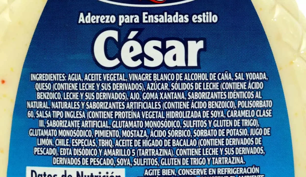 - Agua, aceite vegetal, vinagre blanco de alcohol de caña, sal yodada, queso, azúcar y derivados.