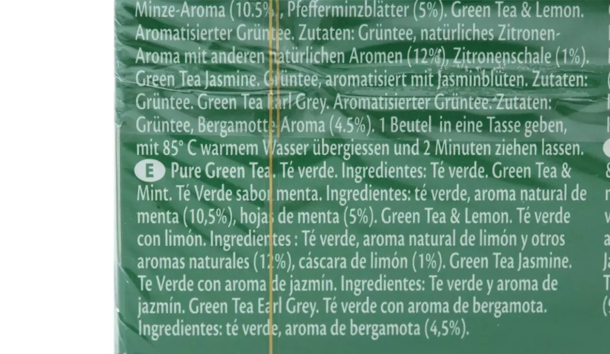 - te verde menta, te verde jasmín, te verde, te verde y limón, te verde earl grey.