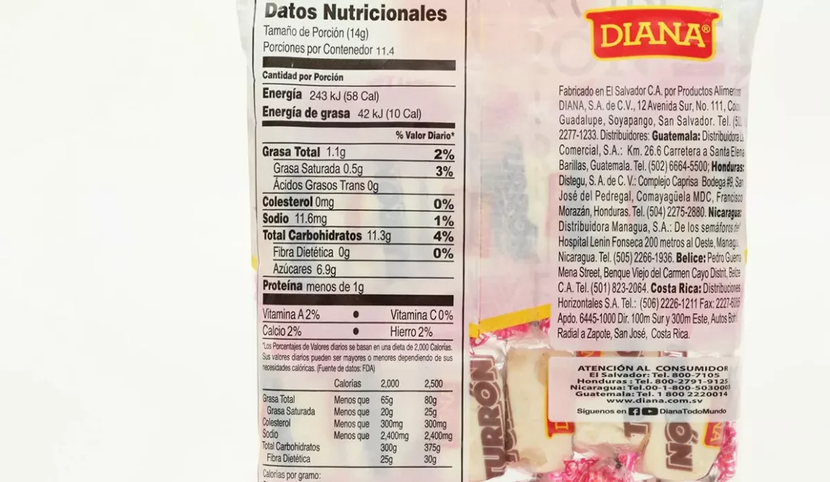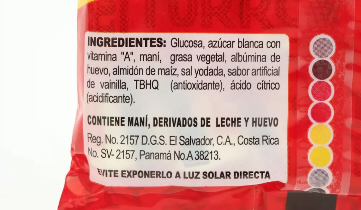 - Glucosa, azúcar blanca con vitamina A, maní, grasa vegetal, albúmina de huevo, almidón de maíz, sal yodada y sabor artificial de vainilla.