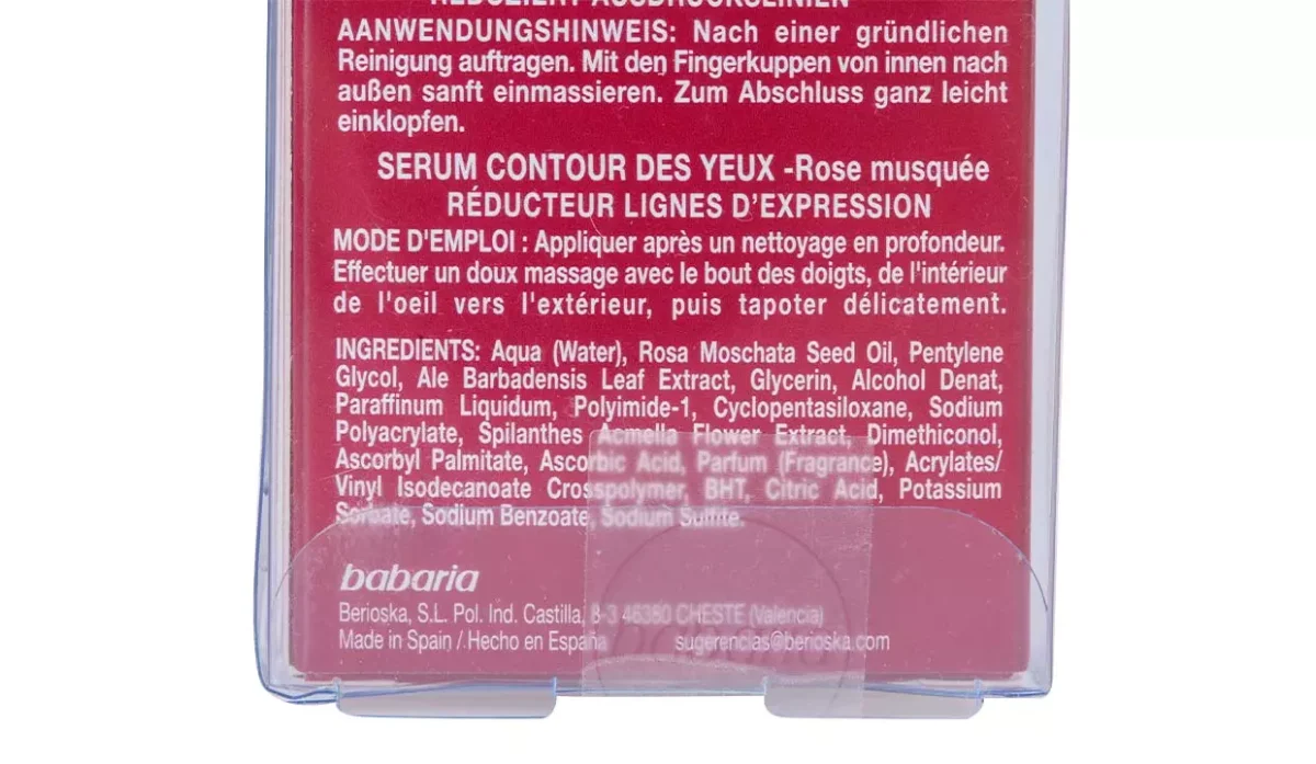 - Rosa mosqueta, aloe vera y extracto de la planta Acmella Oleracea.