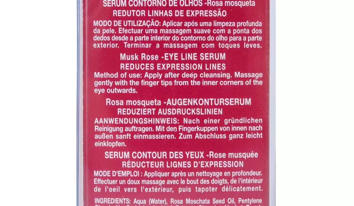 - Las combinaciones de aceites de rosa mosqueta, aloe vera y el extracto de la planta Acmella Oleracea hacen de este serum un producto perfecto para actuar contra las arrugas y las líneas de expresión, porque paraliza los músculos, hidrata y estimula la producción de fibroblastos.