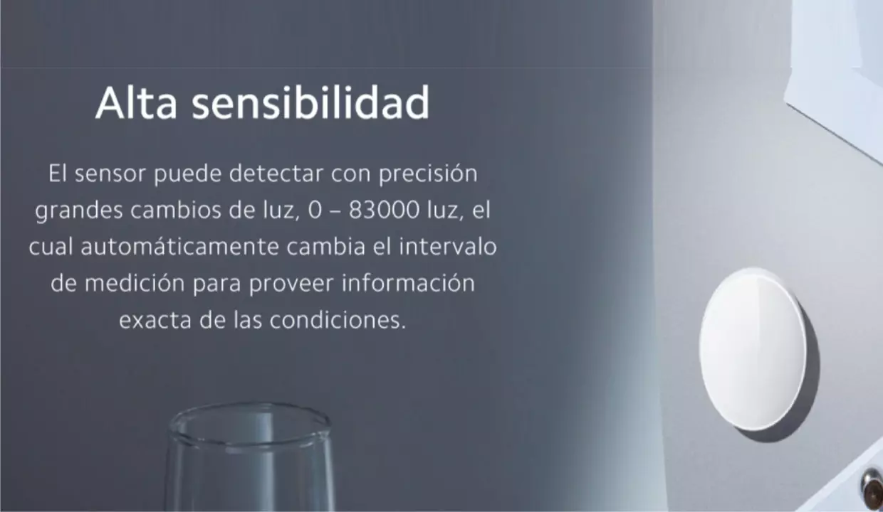 - Alta sensibilidad: El sensor puede detectar con precisión grandes cambios de luz, 0 - 83000 luz, el cual automáticamente cambia el intervalo de medición para proveer con información exacta de las condiciones.