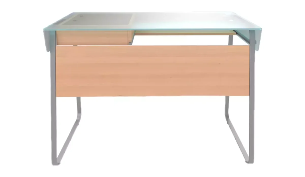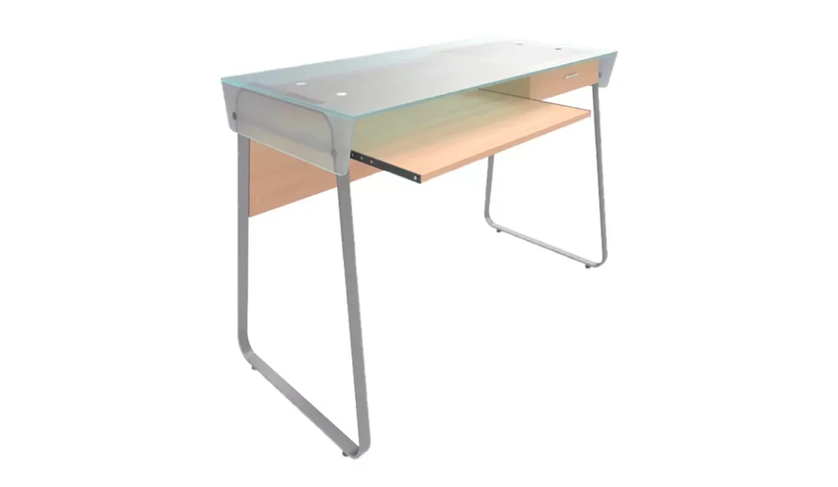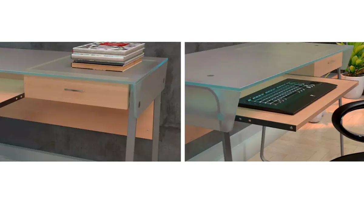 - Versátil y funcional escritorio de un nivel con bandeja deslizable para teclado.